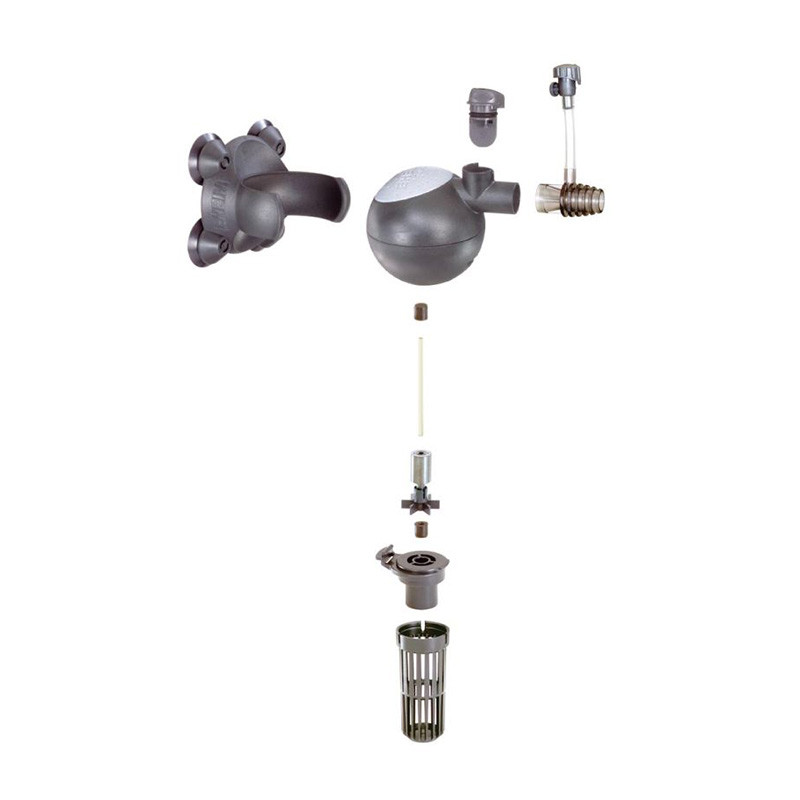 - A labda alakú szivattyúfej egy gömbcsuklós tartó kengyelben helyezkedik el, ami körbe forgatható, így a kiáramló szűrt vizet minden irányba eljut.