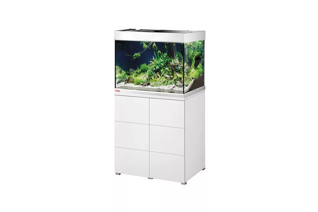Fedett akvárium elegáns alumínium védőkerettel és tetőzettel, szűrés- és fűtéstechnikával.