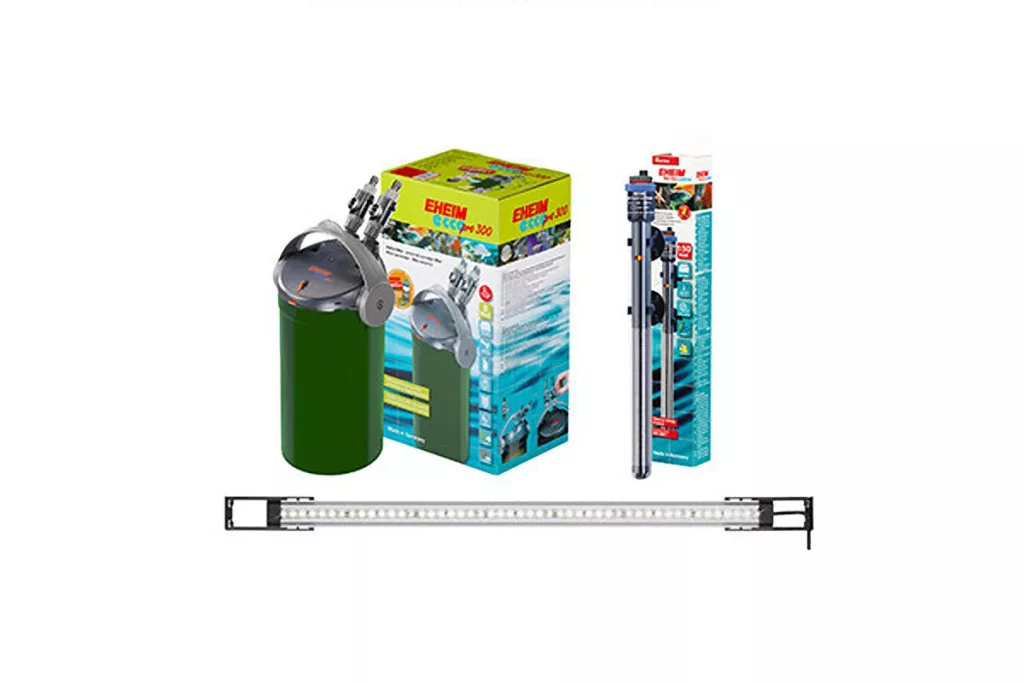 - Az akváriumszett tartalmazza a rendszerhez optimális, legendásan megbízható Eheim Ecco Pro 300 szűrőt és az Eheim Thermocontrol 150 W fűtőeszközt is.