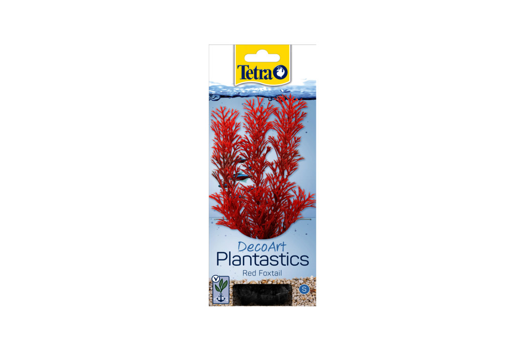 A Tetra DecoArt Plantastics Red Foxtail élethű műnövény változata a vörös süllőhínár vízinövénynek. Élénkvörös, tollpihe-szerű levelei különösen látványosak. Szokatlan külseje miatt gyakran párosítják más akváriumi növényekkel, melyekkel szép kontrasztot alkot. Szintén ideális a szűrő, fűtő és más műszaki berendezések elrejtésére. Az élő növények sokszor megsínylik, ha a szűrő vagy a fűtő mellé kerülnek, a mű változatokra azonban semmilyen rossz hatást nem gyakorolnak ezek a felszerelések. Bár az élő növény összes természetes funkcióját nem tudja kiváltani, az élethű másolat nagyszerű helyet biztosít a halaknak íváshoz vagy rejtőzködéshez. Ráadásul a mű süllőhínár nem csak megtévesztően igazinak tűnik az akváriumban, természetes módon mozog együtt az áramlással is. A műnövényeknek egyéb előnyei is vannak. Először is, rendkívül könnyű behelyezni őket az akváriumba, majd kivenni onnan, és egyszerűen a csap alatt tisztíthatók. Ezen kívül igen tartós: hosszú távon sem veszíti el élénk színét és nem deformálódik el. Kis, közepes és nagy méretben kapható (15, 23 és 30 cm), így a a műsüllőhínár az akvárium első, középső és hátsó részére is helyezhető igény szerint. A nagy verzió gyakran a víz felszínéig felnyúlik. Összességében a Tetra DecoArt Plantastics Red Foxtail változatos és különleges dísze lehet bármelyik akváriumnak.