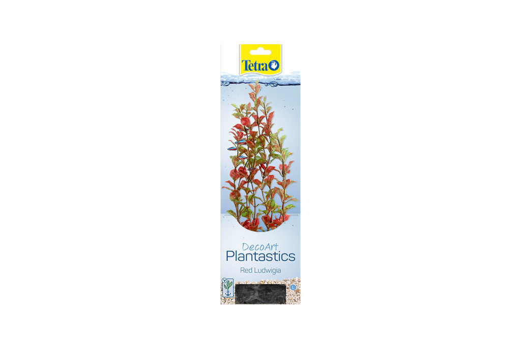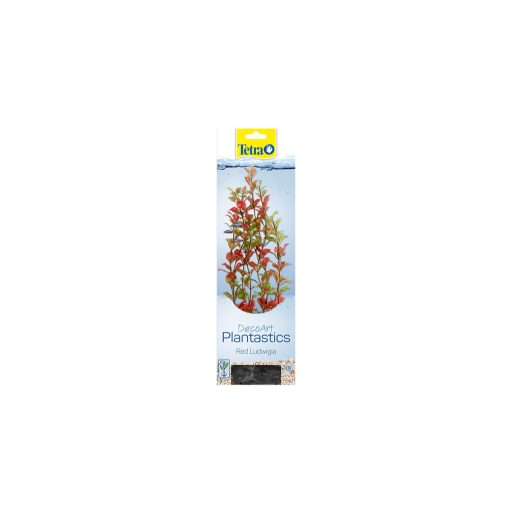 A Tetra DecoArt Plantastics Red Ludwigia élethű műnövény változata a tóalma vízinövényeknek. Zöld és vörös levelei különösen látványosak. Szokatlan külseje miatt gyakran párosítják más akváriumi növényekkel, melyekkel szép kontrasztot alkot. Szintén ideális a szűrő, fűtő és más műszaki berendezések elrejtésére. Az élő növények sokszor megsínylik, ha a szűrő vagy a fűtő mellé kerülnek, a mű változatokra azonban semmilyen rossz hatást nem gyakorolnak ezek a felszerelések. Bár az élő növény összes természetes funkcióját nem tudja kiváltani, az élethű másolat nagyszerű helyet biztosít a halaknak íváshoz vagy rejtőzködéshez. Ráadásul a mű tóalma nem csak megtévesztően igazinak tűnik az akváriumban, természetes módon mozog együtt az áramlással is. A műnövényeknek egyéb előnyei is vannak. Először is, rendkívül könnyű behelyezni őket az akváriumba, majd kivenni onnan, és egyszerűen a csap alatt tisztíthatók. Ezen kívül igen tartós: hosszú távon sem veszíti el élénk színét és nem deformálódik el. Kis, közepes és nagy méretben kapható (15, 23 és 30 cm), így a a mű tóalma az akvárium első, középső és hátsó részére is helyezhető igény szerint. A nagy verzió gyakran a víz felszínéig felnyúlik. Összességében a Tetra DecoArt Plantastics Red Ludwigia változatos és különleges dísze lehet bármelyik akváriumnak.