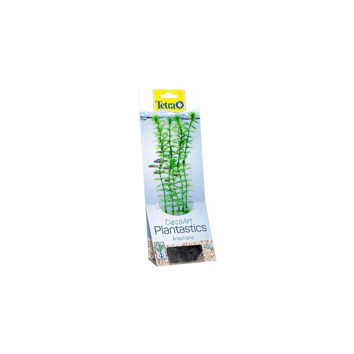 A Tetra DecoArt Plantastics Anacharis élethű műnövény változata a hínárféléknek. A legfeltűnőbb jellegzetességei csillag alakú levelei, halványzöld színe, valamint hosszanti növekedése. Ez ideális akváriumi növénnyé teszi, melyet bárhová helyezhetünk. A magasra növő, de keskeny növények szép hátteret adnak az akváriumi élővilágnak, illetve elrejtik a műszaki berendezéseket is (szűrő, fűtő). Az élő növények sokszor megsínylik, ha a szűrő vagy a fűtő mellé kerülnek, a mű változatokra azonban semmilyen rossz hatást nem gyakorolnak ezek a felszerelések. Bár az élő növény összes természetes funkcióját nem tudja kiváltani, az élethű másolat nagyszerű helyet biztosít a halaknak íváshoz vagy rejtőzködéshez. Ráadásul a mű hínár nem csak megtévesztően igazinak tűnik az akváriumban, természetes módon mozog együtt az áramlással is. A műnövényeknek egyéb előnyei is vannak. Először is, rendkívül könnyű behelyezni őket az akváriumba, majd kivenni onnan, és egyszerűen a csap alatt tisztítható. Ezen kívül igen tartós: hosszú távon sem veszíti el élénk színét és nem deformálódik el. Kis, közepes és nagy méretben kapható (15, 23 és 30 cm), így a a mű anacharis az akvárium első, középső és hátsó részére is helyezhető igény szerint. A nagy verzió gyakran a víz felszínéig felnyúlik. Összességében a Tetra DecoArt Plantastics Anacharis változatos és különleges dísze lehet bármelyik akváriumnak.
