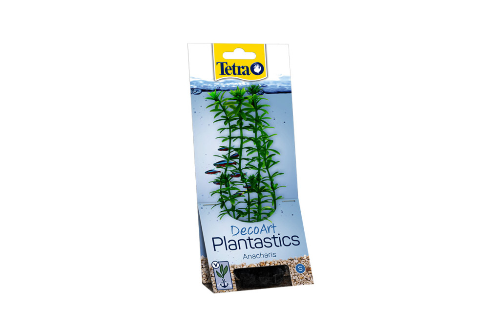 A Tetra DecoArt Plantastics Anacharis élethű műnövény változata a hínárféléknek. A legfeltűnőbb jellegzetességei csillag alakú levelei, halványzöld színe, valamint hosszanti növekedése. Ez ideális akváriumi növénnyé teszi, melyet bárhová helyezhetünk. A magasra növő, de keskeny növények szép hátteret adnak az akváriumi élővilágnak, illetve elrejtik a műszaki berendezéseket is (szűrő, fűtő). Az élő növények sokszor megsínylik, ha a szűrő vagy a fűtő mellé kerülnek, a mű változatokra azonban semmilyen rossz hatást nem gyakorolnak ezek a felszerelések. Bár az élő növény összes természetes funkcióját nem tudja kiváltani, az élethű másolat nagyszerű helyet biztosít a halaknak íváshoz vagy rejtőzködéshez. Ráadásul a mű hínár nem csak megtévesztően igazinak tűnik az akváriumban, természetes módon mozog együtt az áramlással is. A műnövényeknek egyéb előnyei is vannak. Először is, rendkívül könnyű behelyezni őket az akváriumba, majd kivenni onnan, és egyszerűen a csap alatt tisztítható. Ezen kívül igen tartós: hosszú távon sem veszíti el élénk színét és nem deformálódik el. Kis, közepes és nagy méretben kapható (15, 23 és 30 cm), így a a mű anacharis az akvárium első, középső és hátsó részére is helyezhető igény szerint. A nagy verzió gyakran a víz felszínéig felnyúlik. Összességében a Tetra DecoArt Plantastics Anacharis változatos és különleges dísze lehet bármelyik akváriumnak.