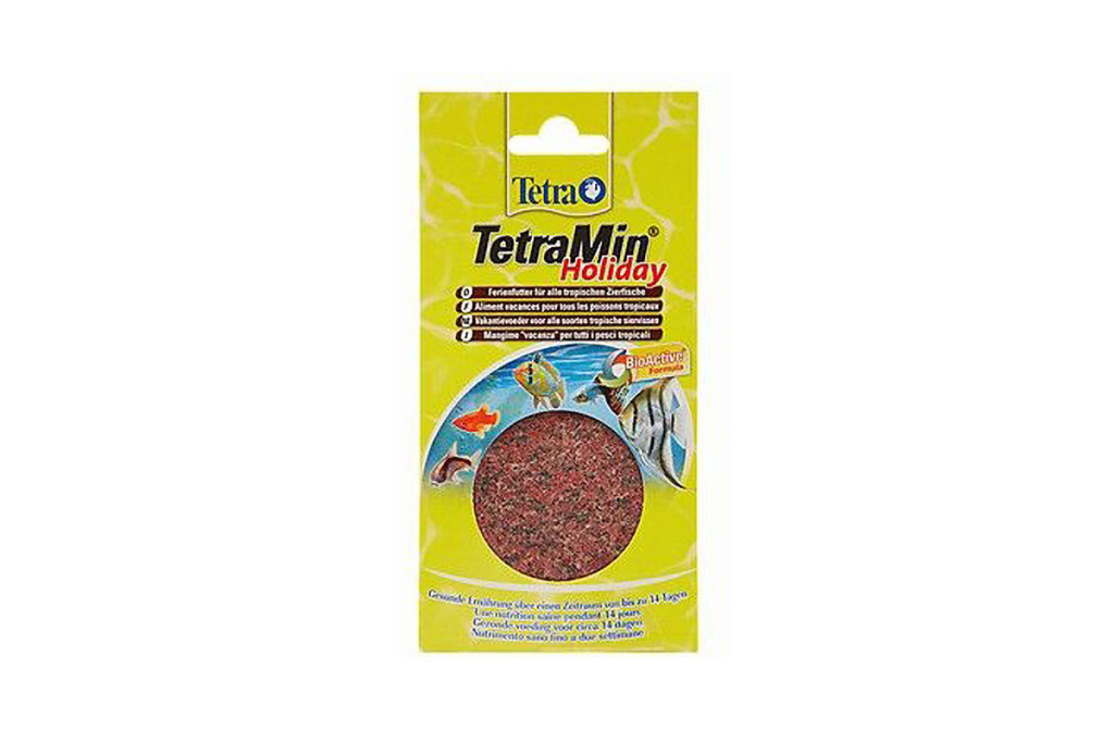 A Tetra Holiday optimális és megbízható táplálékul szolgál halainak, amíg Ön vakációra megy. Az akvárium méretétől és a halak számától függően akár 14 napig is eltarthat. A Tetra zseléstáp-technológiájának köszönhetően ez a vakációs haltáp gipsz helyett zselé alapú. Ennek a módszernek a legfontosabb előnye, hogy a táp hosszú távon nincs kedvezőtlen hatással a víz minőségére, így a vízértékek stabilak maradnak. A Tetra BioActive formuláját tartalmazó zselés táptömb 100%-ban ehető és tartalmazza az összes olyan létfontosságú vitamint, nyomelemet és ásványi anyagot, amelyek tökéletesen igazodnak a halak igényeihez és amelyekre szükségük van, hogy egészségesek maradhassanak. A vakációs táp vízibolhát is tartalmaz, hogy a halak vakáció során történő etetése különösen ízletes élmény legyen. Az akváriumban található halak szükség szerint csipegethetnek a tömbből, mivel az magától nem oldódik fel.