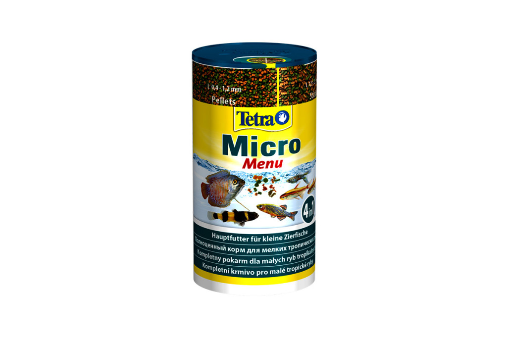 Teljes értékű tápkeverék, amely külön rekeszekben négy típusú eledelt foglal magában. A víz különböző régióiban etethető, kisméretű halak számára.