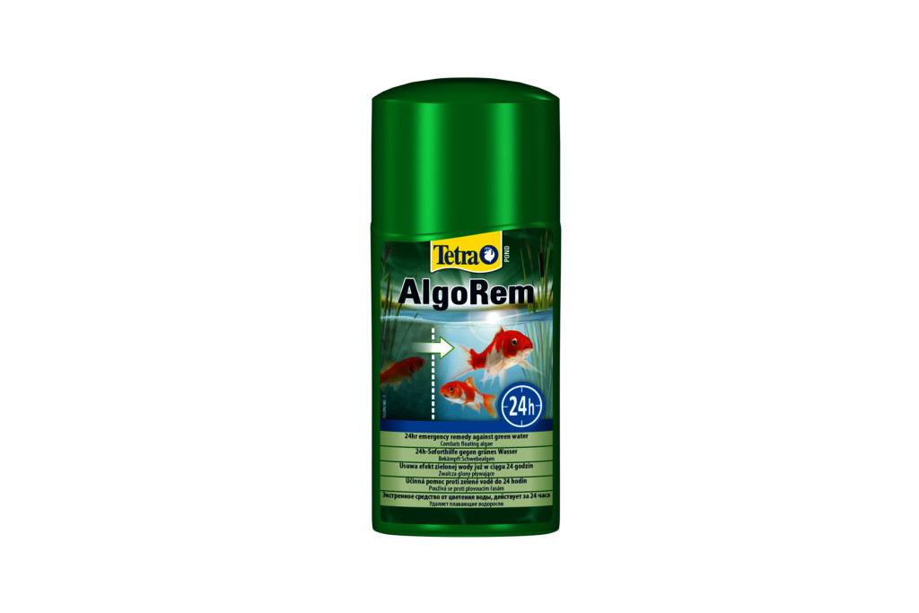 TetraPond AlgoRem - zöldvíz ellen. Gyors, biztos és környezetbarát. A túlzott alganövekedés károsíthatja a növényeket és a halakat (oxigénhiány) és a kerti tó ökorendszerét is tartósan befolyásolhatja. A TetraPond AlgoRemŽ megköti a lebegőalgákat anélkül, hogy a tólakók és a növények egyensúlyát megzavarná. Hatásmód: Fizikai úton hat: a lebegőalgákat és a koszrészecskéket összebálázza. Így azokat könnyebb mechanikus módon eltávolítani, ill. a szűrő könnyebben ki tudja ezeket szűrni. Gyors és különösen környezetbarát hatásmód. Tiszta tóvizet eredményez. Hatékonyan eltávolítja az algák táplálékául szolgáló anyagokat, pl. a foszfátot. Különösen egyszerűen és precízen adagolható.